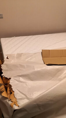 送装态度很好,包装很严实,下雨送来也没淋湿。;本来已经铺床上了,但薄膜一拆开味道着实有点儿大,有些刺鼻,不敢马上睡。只能又把新床垫翻起来立旁边晾着,继续旧床垫。产品使用说明书上写的要晾1-4周,好吧,只能继续让它在客厅走廊上立着了