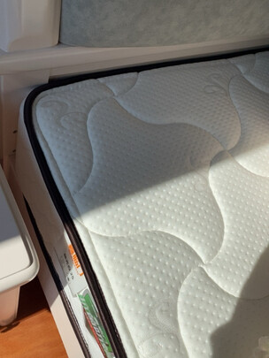 大热天,师傅送货上门,因为电梯小,只能走楼梯,帮着师傅一直抬到六楼。外包装有一块破损,拆包后检查里面没有受损,宣传厚度22厘米,实测21厘米,质量做工还不错,山羊绒面料、九区独立弹簧、环保3e棕加天然乳胶,乳胶厚度1厘米,软硬两用,两面不同睡感,一面适中稍软,一面偏硬,冬天可以睡正面恒温舒适,夏天睡背面硬爽透气,面料可拆洗,可视透气网能看到里面的材质和弹簧,睡了一晚总体还不错,比较舒适。