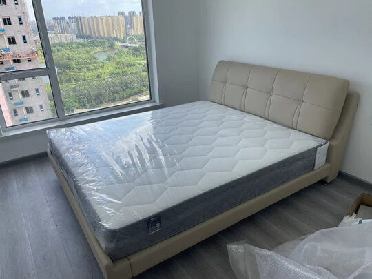 床非常漂亮,床头靠背皮质很好,非常软,靠着看书看手机都很舒适,乳胶床垫软硬适中,面料亲肤软滑,真是物美价廉,高品质。