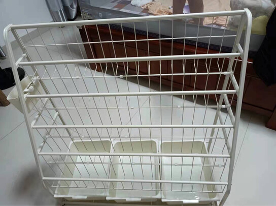 自从有了书架,宝宝的书终于有了自己的小窝,宝宝找书也特别方便!整理起来也省事!宝妈很是喜欢!书架的材质很好,铁艺的书架很结实不用担心用不住!唯一一点就是物流出现破损,又重新发货,耽误了好长时间。物流再快点就完美了!