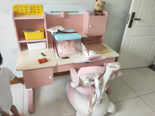 宝宝马上就要上小学了。提前买个书桌。可以上门安装。质量非常好。没有什么异味,椅子超级棒。宝宝坐上自动贴合后背,椅子也不会动了。还有可以放ipad的地方。有一个收纳的抽屉。桌椅都可以升高。按照宝宝的身高自己能调节高度。