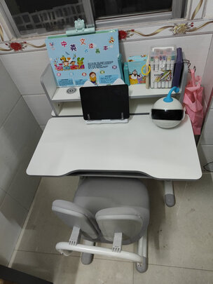 到货就自己安装了,必须说一下,一点异味都没有,应该是绝对的环保。性价比很高的一套儿童学习桌。椅子安装也很方便,就是椅垫和拷贝只靠一个螺丝固定的方式,感觉不太耐用,用一段看看了,用实践来检验。