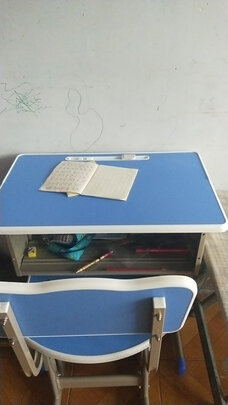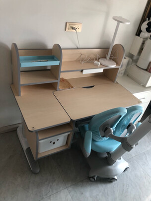 学习桌很棒,很好!刚安装好,一点味道也没有。板材质量也很好,椅子坐着很舒服。高低可以调节,可以用到孩子上完高中。