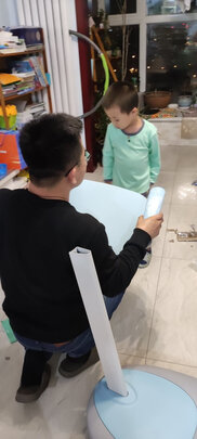 ,把卡拽孩子喜欢的颜色,他已经等不了师傅来安装,让爸爸安装上了,颜色很好看,桌椅都是可调节的,能用好久,最好的一点是,一点异味都没有,棒棒哒,课桌挺大,放客厅了