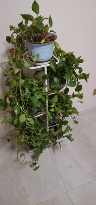 花架子不算高,放我这种已经长长的绿萝就不大合适了,只能放个四盆吧,可以放点小一些的花盆或者多肉就能放五盆了,架子还是比较结实的。