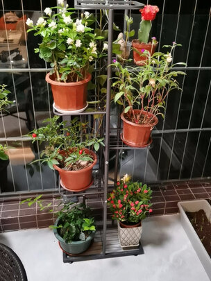 这个花架第二天就送来了,看起来不错,简单大方,安装也方便,有说明书,一看就懂,能放8个花盆,占地面积不大,还是蛮稳的,就是有一点点晃。