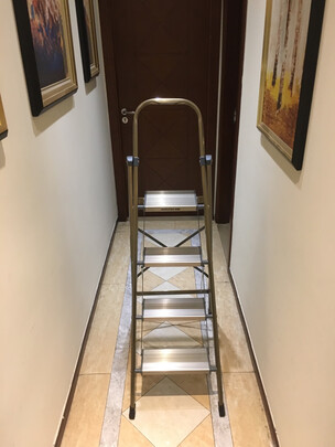 梯子很快就收到了,立马打开仔细看看,感觉做工非常细腻,喷漆十分均匀,光滑的很,没有一点点毛刺四步梯高矮正好,站上去稳稳的一点也不晃,这样就保证了安全,还要特别提示一下商家的客服人员十分敬业,什么时候都是在线状态,有问题马上就回复了,,点个赞!