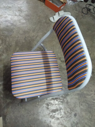买的这个椅子挺轻的 折叠方便 看着还像回事儿 至于质量 一般 价格摆着呢 稍微体重沉的人最好别选 容易坐坏