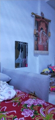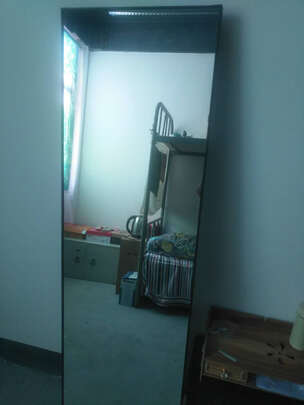 请忽略背景哈,家里有点乱,镜子还是不错的,很清晰,京东送货上门,师傅帮着拆开确认完好才走的,160高的有点大哈,放在地上比较稳当,如果能设计成可挂在墙上也可放在地上的就更好了