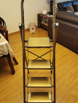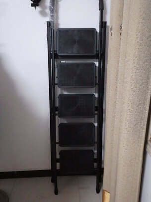 梯子结实稳固、安全耐用,设有弧形胶棉扶手,防滑加大踏板,马蹄防滑底脚,最上面设置了多功能工具架,梯子采用三角加固横梁,材质也是碳钢材质,兼具安全性与美观性,非常的满意!