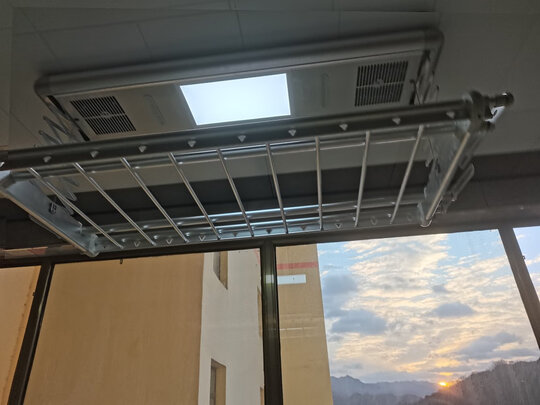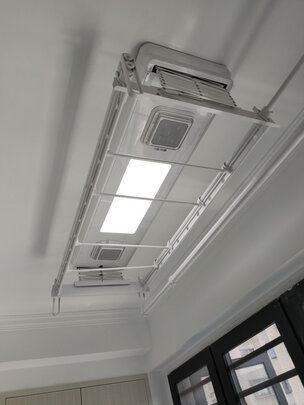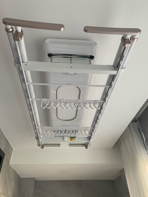 晾衣架装好了,感觉真的不错!这款很有设计感,晾衣杆也不会挡到灯,连安装师傅都说好!晾衣杆拉长可以达到2.2米可以晒被单等,电动上升下降都非常顺滑,总之很满意!科技改变生活啊!