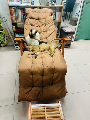 椅子还挺不错的,比较硬实,摇起来也比较轻松舒服。有很多刮伤,脱皮等瑕疵,影响不大,还可以接受。垫子很垃圾,会跑棉没有弹性,容易脏,粘毛,有毛孩子的不建议要垫子。毛孩子占据沙发我才买的椅子,没想到买回来我基本就没坐过,卑微。