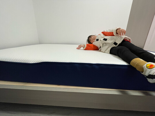 很软很舒适,有防尘罩不怕装修落灰。厚度非常厚,坐上去比沙发还软,但是躺着也不会陷进去那种,体验感很棒!主卧次卧都选择了蓝盒子!
