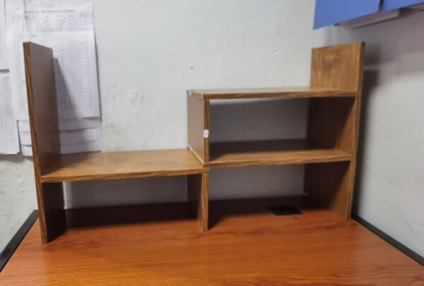 很不错的简易书架,安装有说明,容易看懂,一个人半小时就完成安装了。放在办公室大小电脑桌上,美观、大方、实用,很满意!