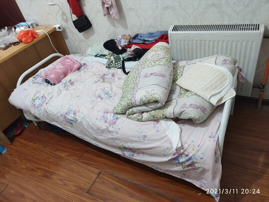 床送到了,给送到了六楼。快递员辛苦了。这个床的质量不错,很稳固,很牢固,睡了一天也特别好。价格也不算太贵。真是一个物美价廉的商品呐!
