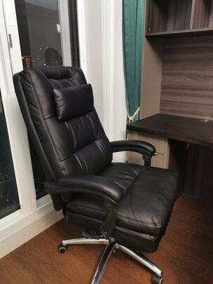 外观样式:很好看,纯黑的,椅子脚是不锈钢的,脚放上去凉凉的很爽的...;产品质量:转动起来很轻便,没有声响,静音效果很不错...;使用感受:轻便舒服;商家服务:镇上,没有送到楼下或门口。放在镇上的自提点,小女子提的甚是辛苦...;其他特色:没有买靠背的,占地面积有点大