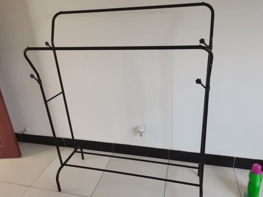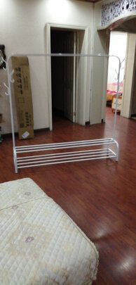 买来在单位挂衣服用的。价格便宜,挺好用,之前买的立式树杈那种,经常挂了一边不平衡就倒了,这个不存在。但可能价格关系 ,杆很细,却还挺结实的人,我们几个人挂羽绒服也很结实。