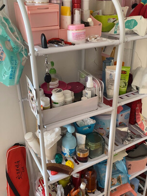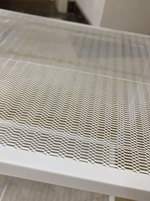 家里阳台感觉东西一直很乱 一直想买个架子置物 刚好看到这款架子 颜值比较高 比普通的银色架子好看多了 不知道置物能力怎么样 唯一有点小瑕疵就是快递把一面给折弯了