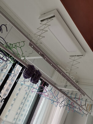 外观简单大气,挂孔足足有四十四个,安装师傅技术娴熟认真负责。升降功能和介绍的一模一样,遥控器设计的磁铁非常人性化,想安装到哪里就安装到哪里!自带LED渐明灯,让阳台上又剩下一个吸顶灯的钱,真是物超所值!