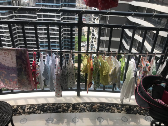 晒衣神器。原本安装的衣架很高,不方便晾晒,这下好了,不必搬凳子垫脚了。杆子可以随意搁置晾晒。不锈钢管,铆钉结合结实。户外室内晾晒的福音。挂钩的高度还可以调节,用起来更方便。真的是很实在的产品。好用,质量好。店家人也不错。推荐