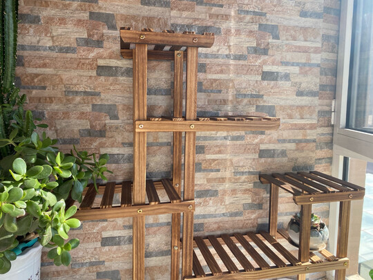 花架特别棒,空间大,质量挺好,全实木,承重能力强,空间喝着设计也很合理,能摆九盆花,放大点的植物也没问题。实木的没啥气味,也没有毛刺,值得购买