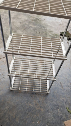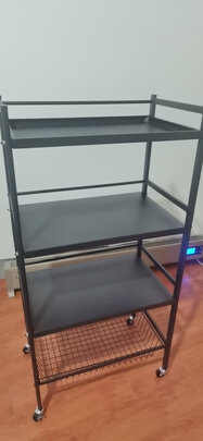 组装简单,慢慢拉开再稍微压一下就可以,再把四个轮子拧上,配有小扳手,可以辅助一下。幸亏买的五层的,老人瞬间就放满了,生活阳台瞬间整齐了许多。