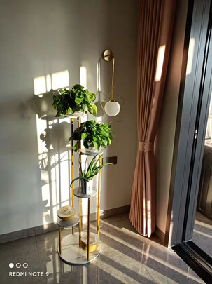 快递运输中出现了破损,店铺能及时补发,总体服务态度还可以。然后花架样式还比较新颖,摆上花盆之后还不错,价格方面不太友好,总体还行咯