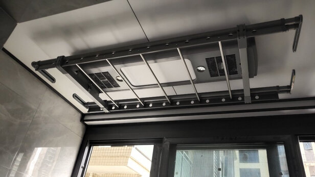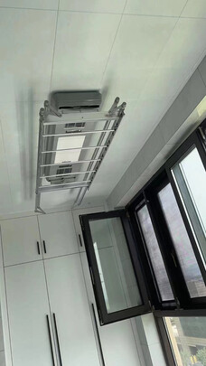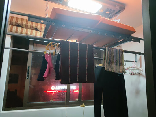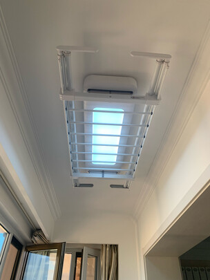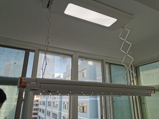买的精装修的房子,没有带晾衣架,然后自己网上对比买了这一款,买回来装上很满意,外观漂亮,白色很搭,性价比也高,灯比原来的亮,省了换灯具的钱,承重能力也很棒。