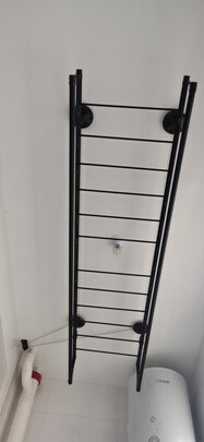 外形外观:美观大气,黑色,非常喜欢得一点就是两杆之间有横杆,可以晾晒好多衣服;承重能力:晾晒衣被没问题,完全吼得住