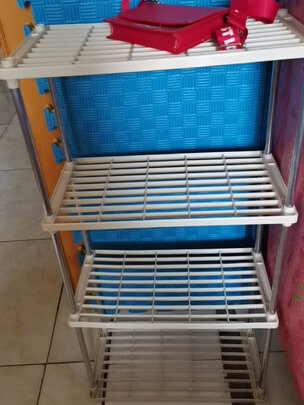 收到这个架子感觉比想象中好很多,这么便宜还能买到这么好质量的架子还是很意外,本以为重物放上去会塌陷,没想到还蛮结实。孩子一会就组装好了,让她自己学着收纳东西,很不错。