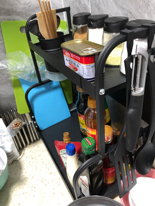 租的房子,厨房空间不是很大,这种桌上架很有性价比。;29.9块钱,颜值也够,还能放筷子还能放各种瓶瓶罐罐,极大程度上节约了桌面空间,也更美观。;架子比较稳,而且铁板厚度刚好,咱也不是说要放啥石头砖头在上面,所以够用了。;还要啥自行车啊!