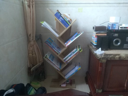 书架材料很厚实,能摆很多书,节省空间,美观有创意。
