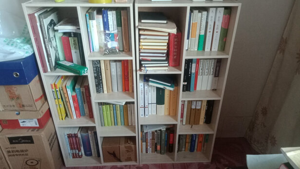 书架已经摆放起来了,效果很不错,可以放好多的书本,做工也满意。