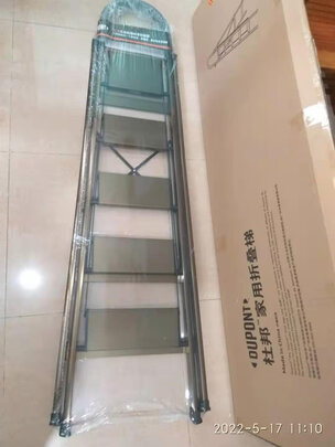 买来上阳台用的,快递还挺快的,第二天就到了。踩上去挺结实的,也不晃悠。但是最底下衔接的地方里面是一条铁丝穿着,刚到的时候掉出来了,还是要注意一点~