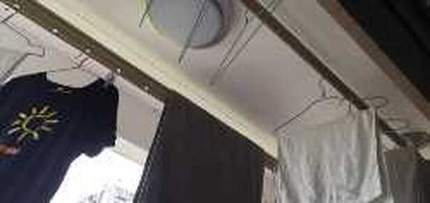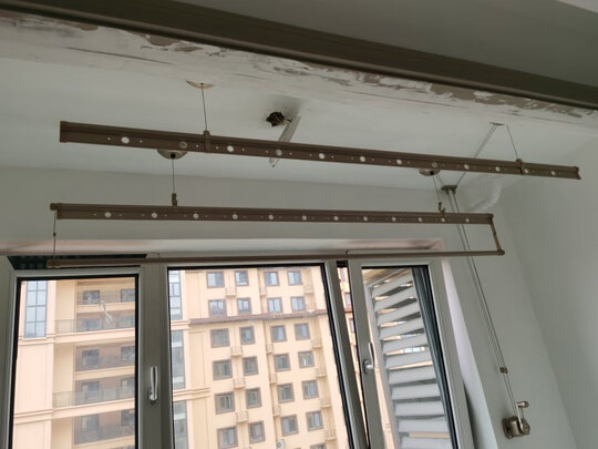 晾衣架安装完毕还挺好,把手摇起来很轻松!
