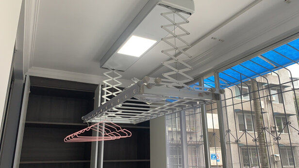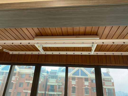 之前选了好几家,一直没定下来买哪个品牌,一个偶然机会知道京东京造,觉得晾衣架本来也不是技术要求很高的产品,所以后面还是决定入手这款,整体来讲性价比很高,因为是阳台是铝扣板吊顶的,送货后由于一直没吊顶,所以一直没安装,后面刚吊顶完给师傅打了电话,当天就给安装了。效率非常高。晾衣架整体简约,一直在京东购买家电,服务保障这块还是比较认同的