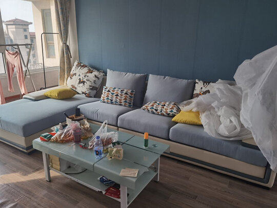 摆放客厅很喜欢,采用是免洗科技布很耐脏家里有小孩子很适合这款易打理。回弹力很棒150斤坐下去起来基本无压痕。