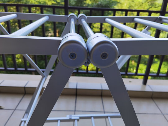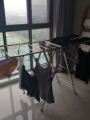 很结实,做工很好,别说晒衣服晒鞋子了,就是晒被褥也没问题。折叠起来还可以当梯子用,不用了收起来很节省空间,已经是好太太的老客户了,之前房子阳台是封起来的用的好太悬挂衣架,这是海南房子,阳台是露天的,刚开始还担心风大不稳当,收到货品,发现完全没问题,会继续支持好太太!