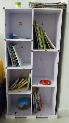 正好房间里有个小空间,放放考试资料很合适,都是自己装的,螺丝拧到手疼,下次得买个电动螺丝刀