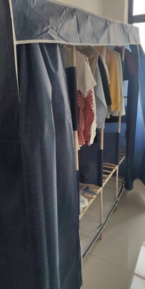美家星简易衣柜布衣柜怎么样?买家释疑【美家星简易衣柜布衣柜】功能评测结果,看看买家怎么评价的?以前就是图方便,买这种布衣柜,这次又帮朋友买了两套。布料结实,防水,后背布料也不错,比以前我买的那种好多了。骨架是铁管的,尤其是接头那些三通四通的,都是加长的,这种值得赞一下!这样装上以后,大幅度的提升了衣柜的支撑力,结构稳固。现在衣柜主要就是挂衣服,这款设计的很好,左中右都是可以挂衣服,底下还可以放一些被褥,确实不错!并且底下还预留了底座撑杆,可以放鞋子,完美解决了底部接地容易受潮,鞋子也无处摆放的难题!