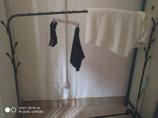 儿子开学了,给他寝室里买的,一帮小伙伴可以挂挂晾晒好的衣服。快递收到后发现横杆还是挺长的,可以挂不少,送学校去让一群小子自己装,装得效果还不错,看来是要这样锻炼一下他们!不仅可以横杆上挂,旁边的挂钩还可以挂挂包包和其它杂物!