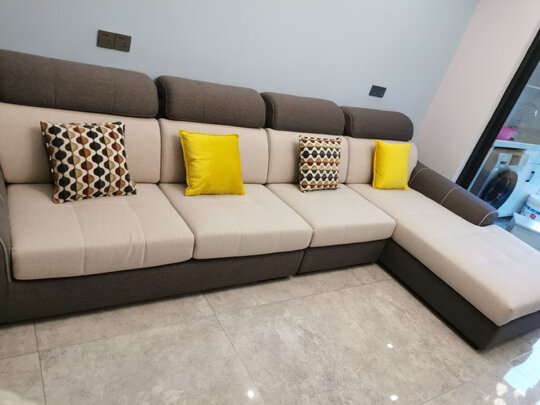 期待已久的沙发终于到了,师傅帮忙弄好,摆起来看着的确不错,质量也很好。