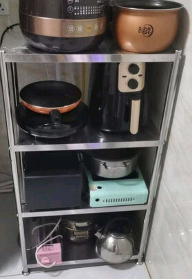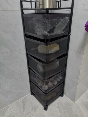 放在厨房冰箱旁的角落,大小正好合适,放菜之类的杂物完全没有问题,要是重物放最上面一排可能有点悬,毕竟价格在那里,总体还是满意的