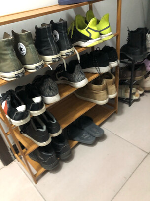 架子收到了,很满意都不用自己安装一展开就好了,特别的方便,材质也很结实而且做工设计都很不错,中间还要一个隔层防止鞋底的灰掉落在下一层鞋上特别的好