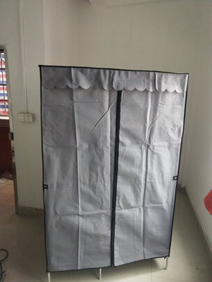 无锈钢管架坚固,容易组装。;有可选的〈拉链〉衣柜无味花纹塑料布更好!心理价100元。
