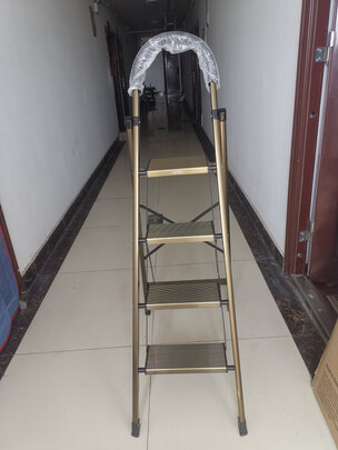 梯子质量很好,美观大气,选择了四阶橘红色,颜色喜庆,刚好收拾房子,使用轻巧,搬起方便,承重能力强,收起来体积不大,方便放置,如果房间高度偏高的话,建议购买五阶的更方便使用,很满意的一次购物,谢谢店家。
