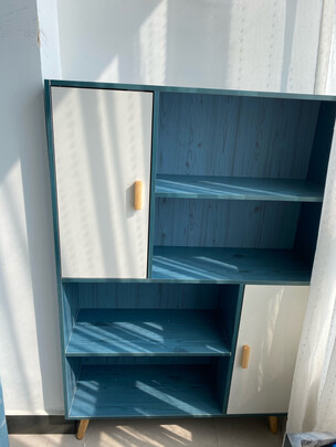 做工比较好,没有棱角,高度刚好适合小宝自己拿放书本,自己还会整理,喜欢哪本自己可以选择,底下的两层置物架,也可以收纳一些小东西,家里有几个书柜放玩具,教具,搭配这款放书,刚刚好