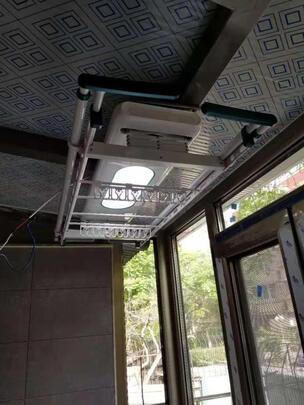 非常好的晾衣架!尤其安装师傅,非常尽心:家里阳台装吊顶了,所以装晾衣架就更费劲。完美~