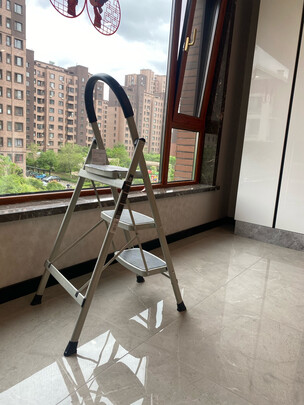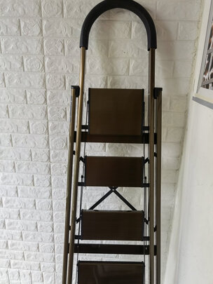 梯子质量不错,很实用,折叠不占地方,打扫卫生收拾东西特别方便,不用的时候还可以放阳台当花架,太好了,男士站上完全不用担心。