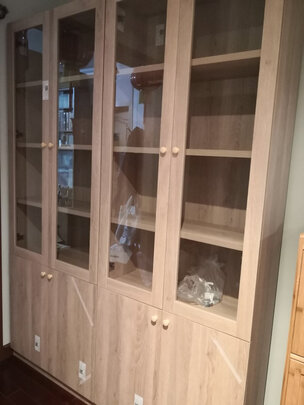 双11购买,预约发货。总体来说还算比较满意,算是物有所值,但有几点不得不提。一个是大的家具企业固有的发货慢,客服态度不好的毛病。二是。书柜玻璃门、平面门和书柜本体之间有色差。看着就很有廉价感,不像是同一个家具上的东西,有兴趣者请仔细看看细节图。总体来说算是物有所值,但不算优品。